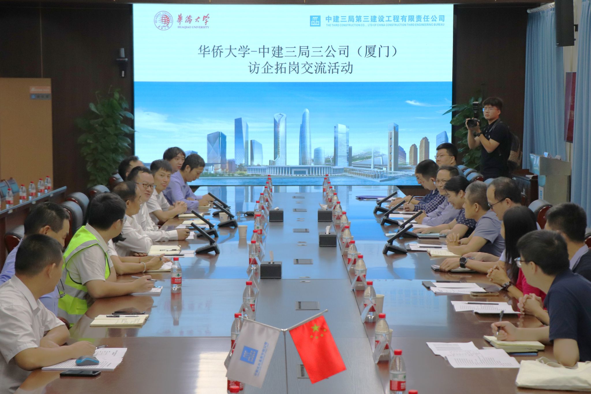 10月25日上午,太阳成集团tyc122ccvip党委书记陈雪琴一行前往中建三局三公司翔安新机场项目部,开展访企拓岗。副院长蔡奇鹏,党委副书记陈竹林等师生代表一同走访。