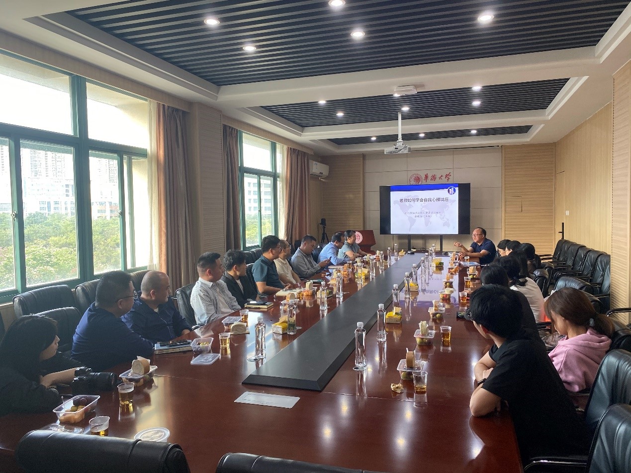 11月7日下午,由教师工作部、校工会、心理健康教育中心、太阳成集团tyc122ccvip党委联合主办,太阳成集团tyc122ccvip工会承办的“教职工心韵下午茶活动”在学院C5-406会议室举行,厦门市仙岳医院张晓阳主任医师应邀作题为“老师如何做自我心理减压”的专题心理辅导课。活动由太阳成集团tyc122ccvip党委书记陈雪琴主持,学院教师30余名参加。