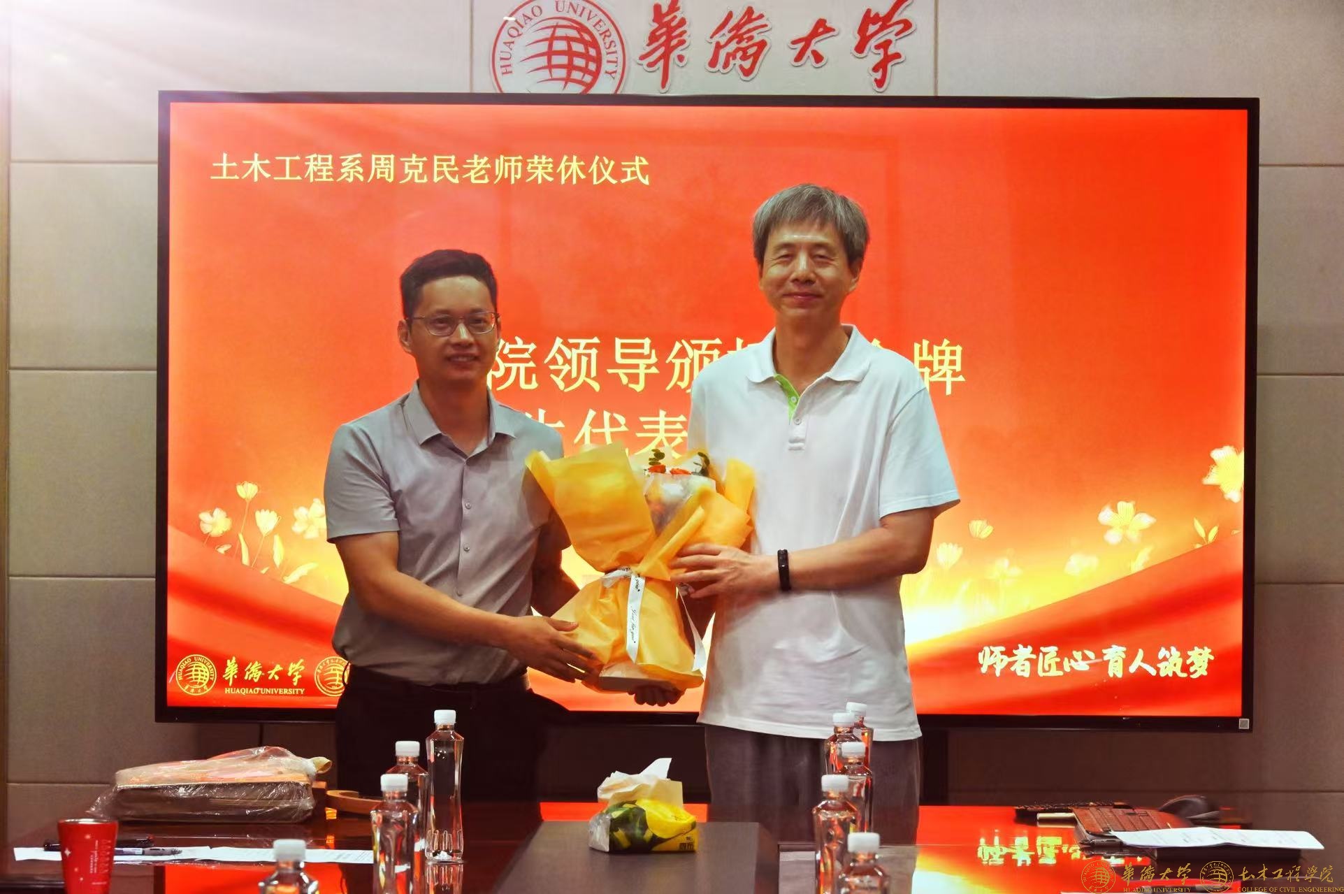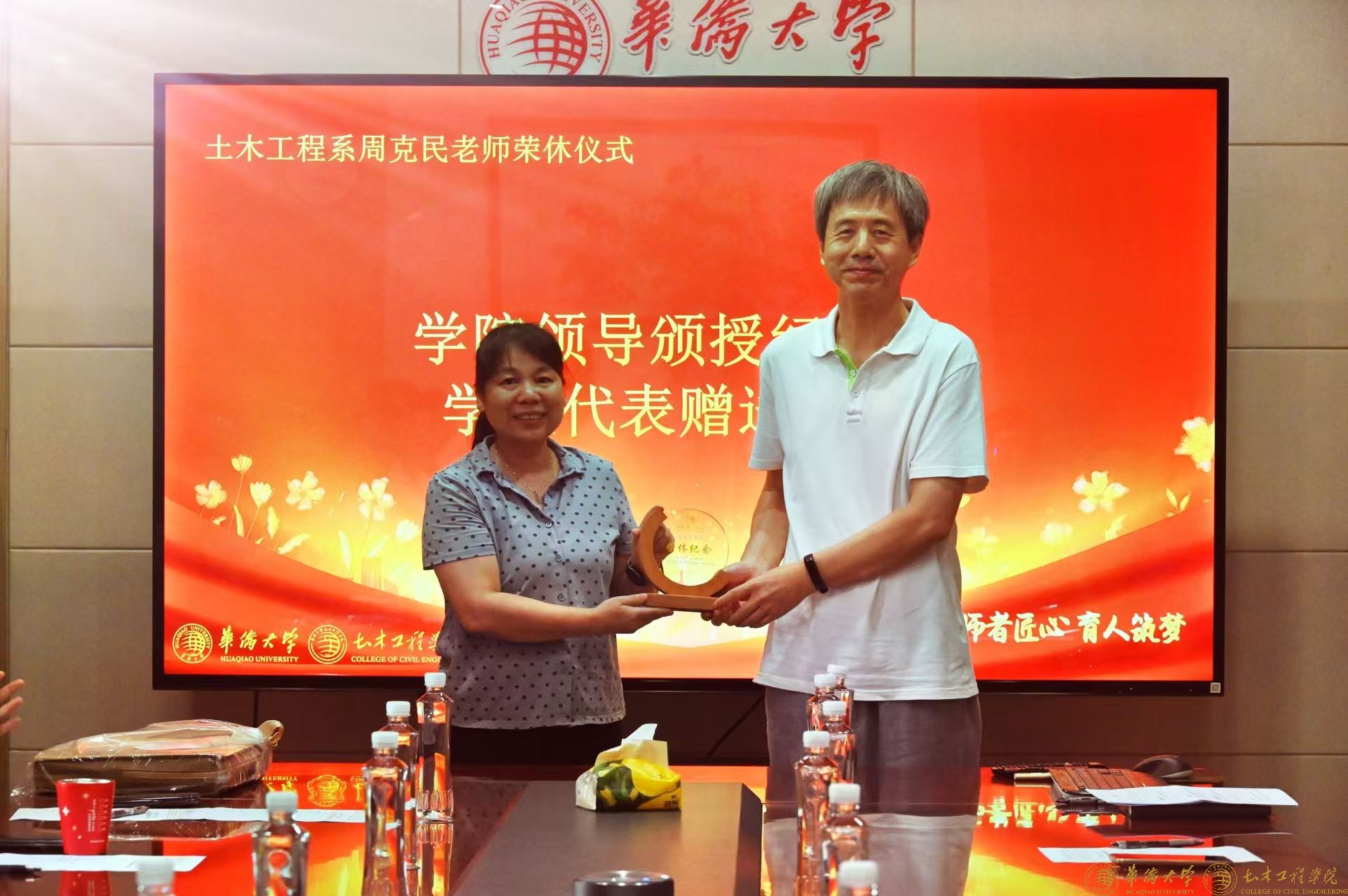 出席仪式的同事、学生及校友代表深情回忆了与周老师共事交往的点滴往事,他严谨务实的治学态度与温和宽厚的待人风格,早已成为师生心中“师者如光”的生动写照。随后,学生代表向周老师献花和赠送礼品,并祝愿周老师拥有一个健康快乐、充实幸福的退休生活。