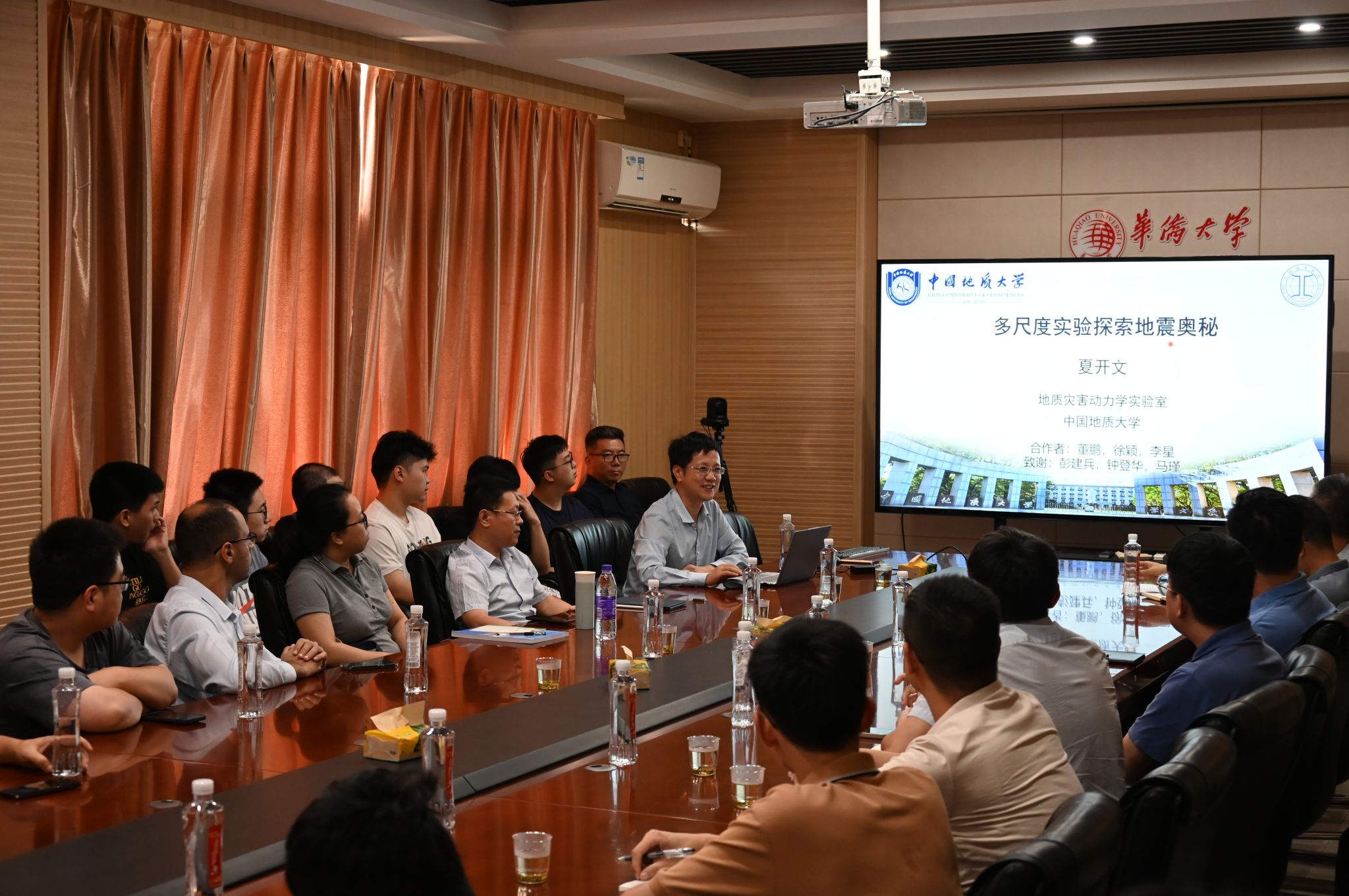 夏开文教授以“多尺度实验探索地震奥秘”为主题作学术报告,介绍了地震研究的最新进展,阐述了通过实验手段揭示地震奥秘的重要性和具体方法。张传庆研究员以“岩石锚杆截面剪切力学特性研究”为主题作学术报告,分享了他在锚杆界面剪切力学的基本原理和研究方法等方面的研究成果。